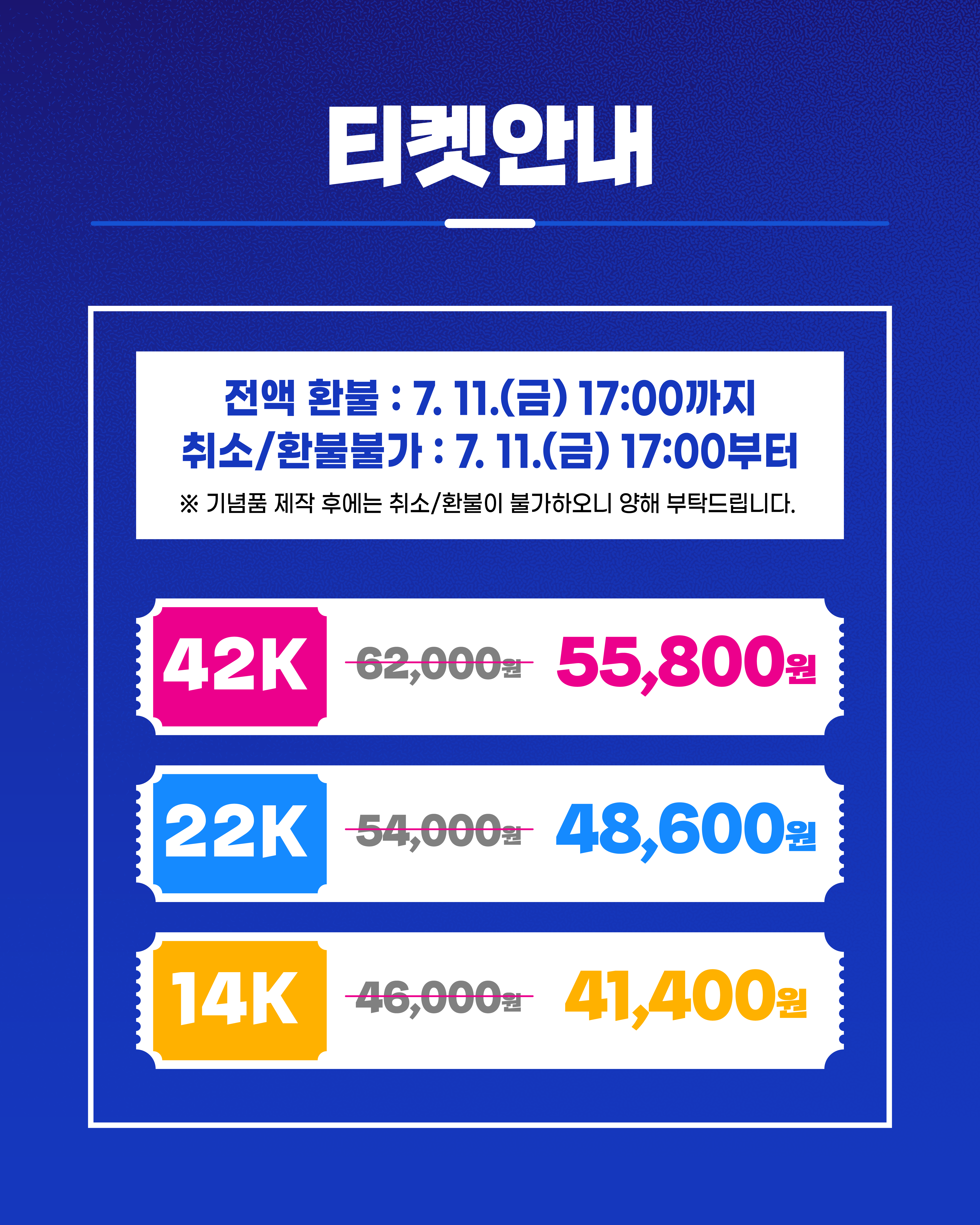 ◆ 코스/시간대/티셔츠 사이즈 변경 희망 시, 구매한 티켓을 취소한 후 재구매 하시기 바랍니다.