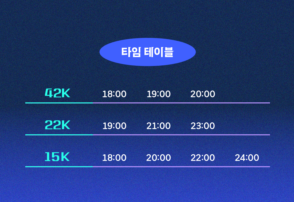 - 주최 측은 주로 상의 갈림길이나 주요 포인트에 표지판과 스태프를 배치합니다. 그러나 야간 레이스 특성상 코스를 혼동할 수 있으므로 사전에 코스를 숙지하시기 바랍니다.
