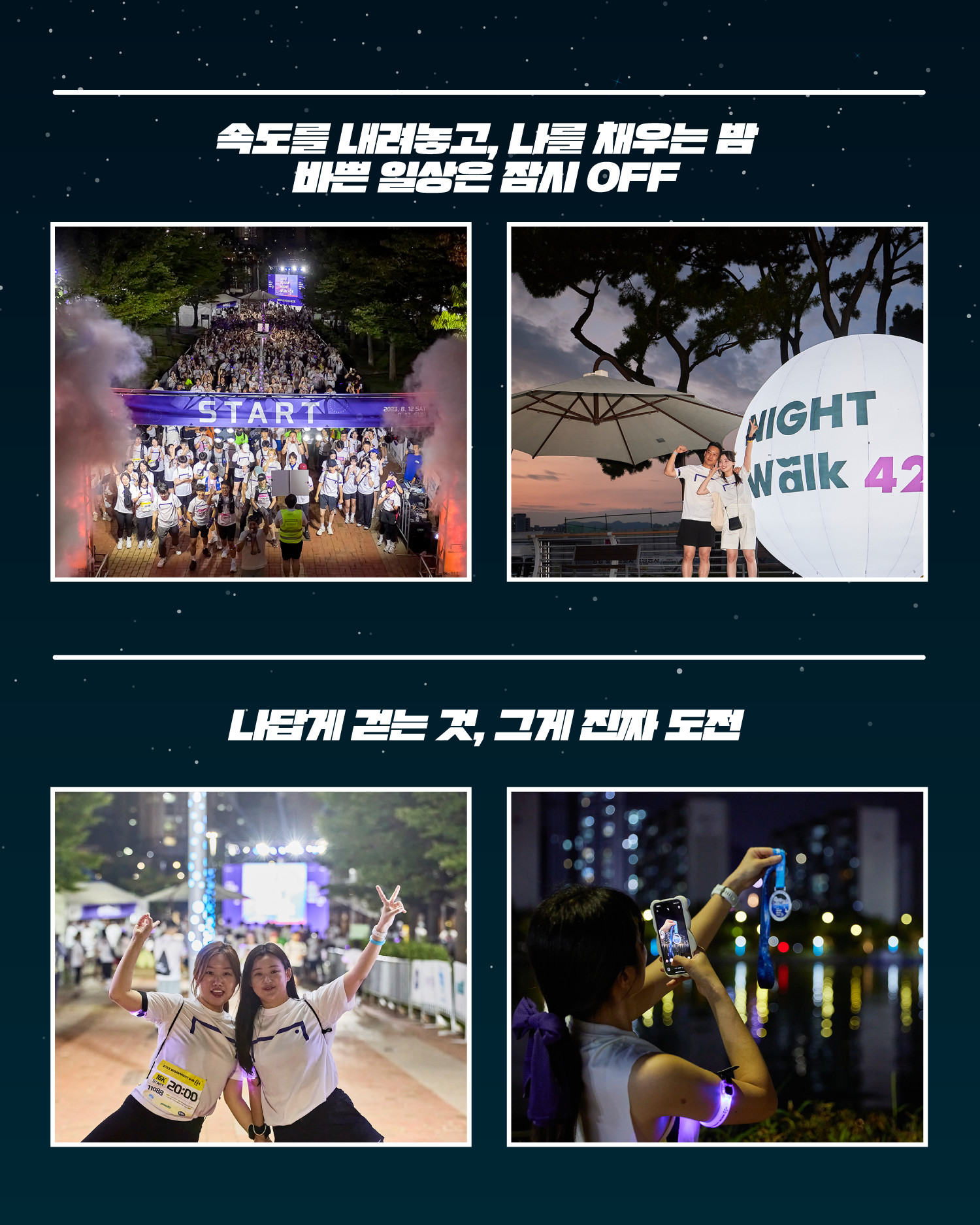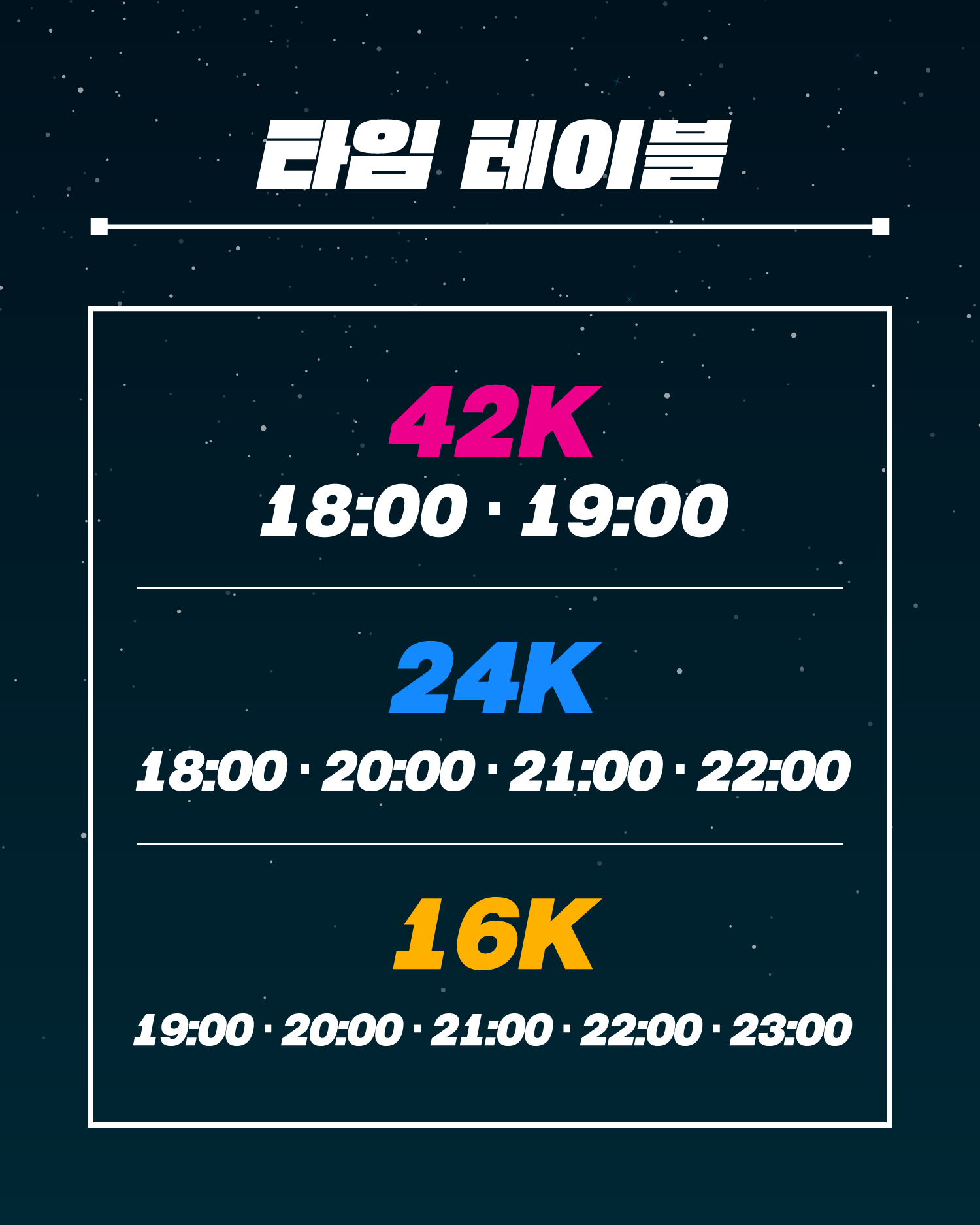 - 주최 측은 주로 상의 갈림길이나 주요 포인트에 표지판과 스태프를 배치합니다. 그러나 야간 레이스 특성상 코스를 혼동할 수 있으므로 사전에 코스를 숙지하시기 바랍니다.