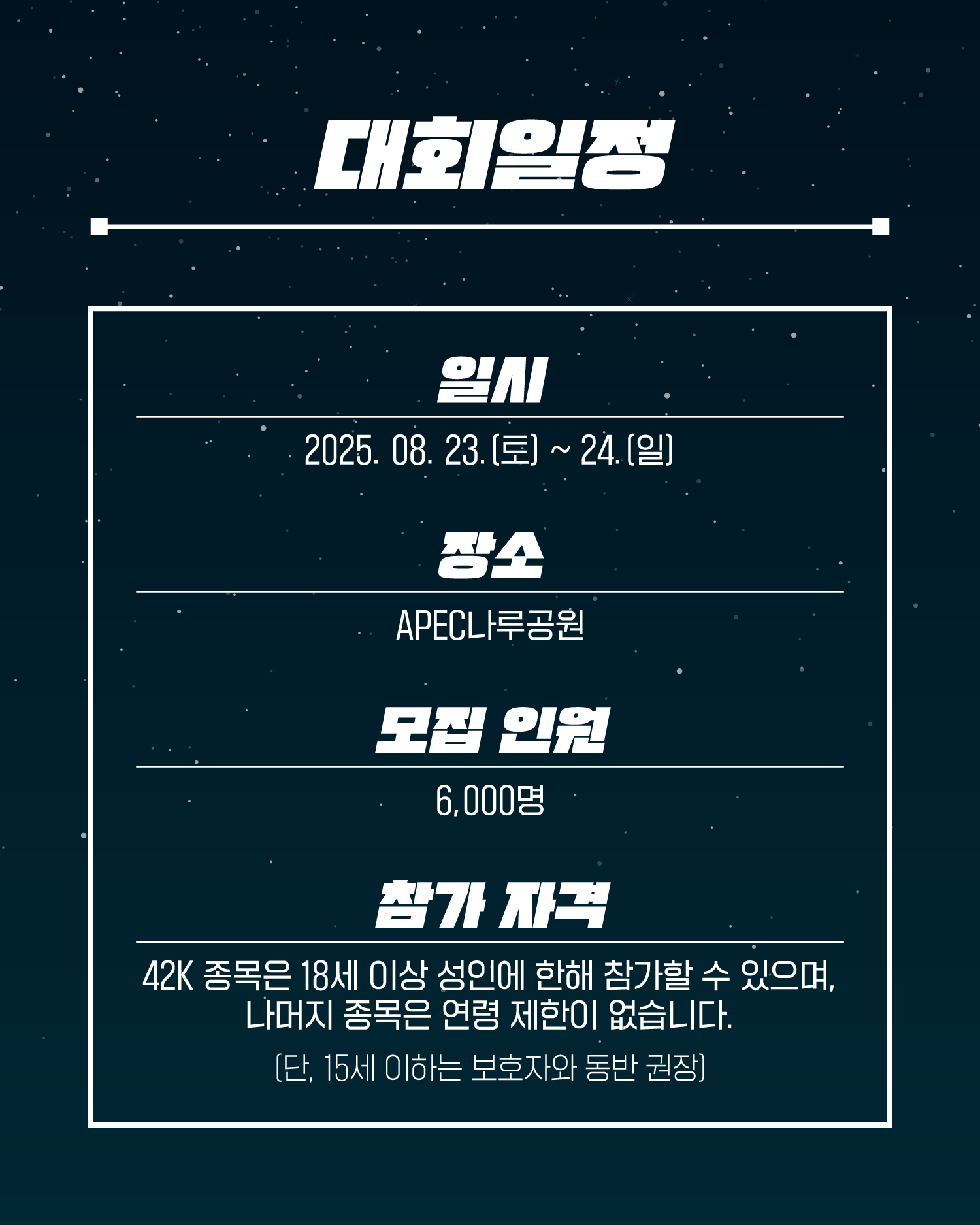 (B) 42K 종목은 18세 이상 성인에 한해 참가할 수 있으며, 나머지 종목은 연령 제한이 없습니다. (단, 15세 이하는 보호자와 동반 권장)